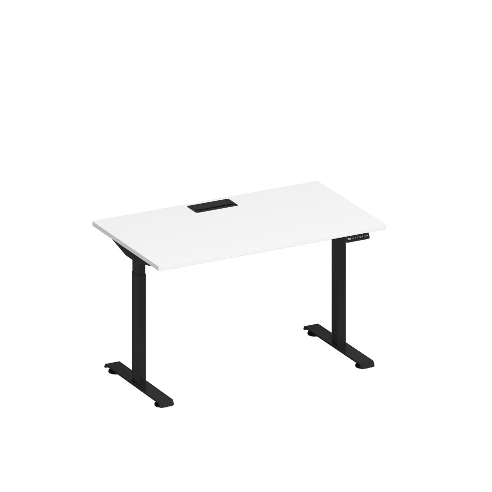 Стол письменный на электроприводе с заглушкой 140x80x72 белый премиум / черный гладкий