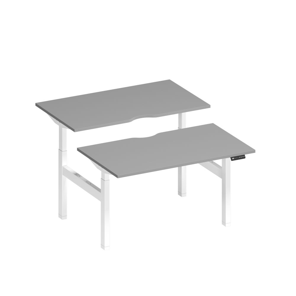 Рабочая станция на электроприводе с вырезами 140x165x72 серый / белый гладкий