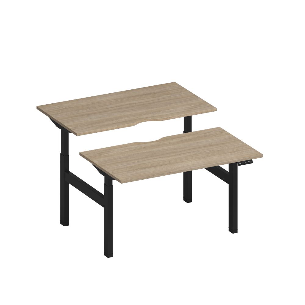Рабочая станция на электроприводе с вырезами 140x165x72 дуб скандинавский / черный гладкий