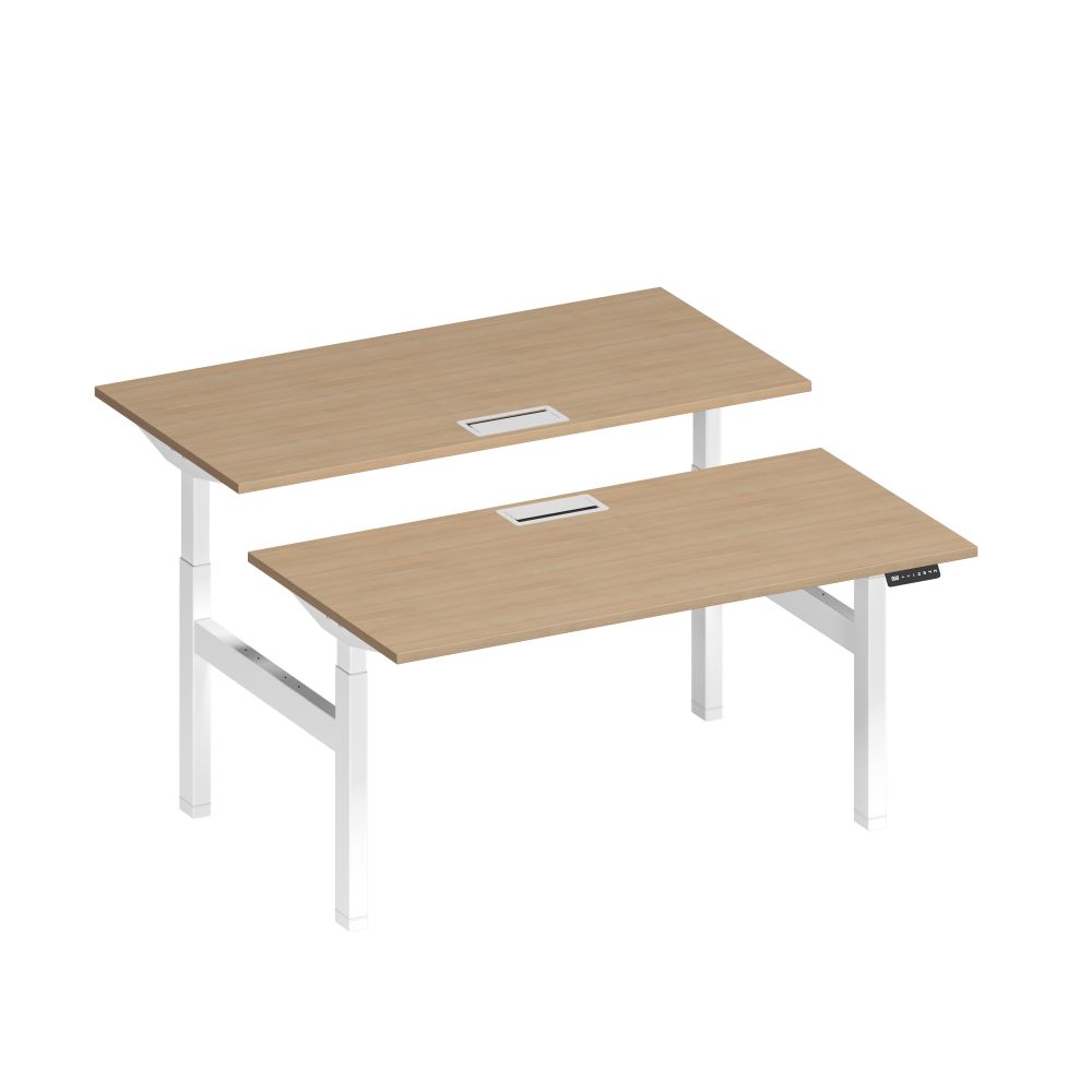 Рабочая станция на электроприводе с заглушками 160x165x72 натуральный дуб / белый гладкий